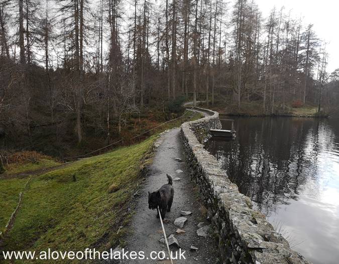 The path skirts the side of Low Dam as it heads towards High Dam