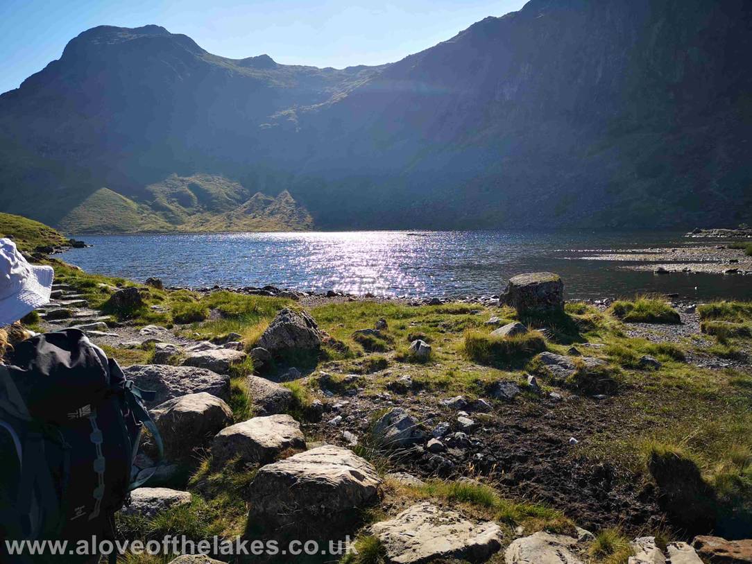 After an arduous toil in the heat the welcome site of Stickle Tarn in