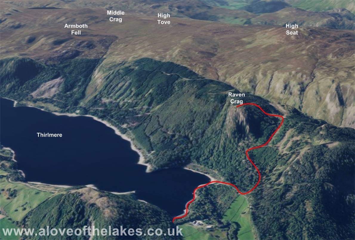 Raven Crag from the causeway. The line of attack will see us climb towards the