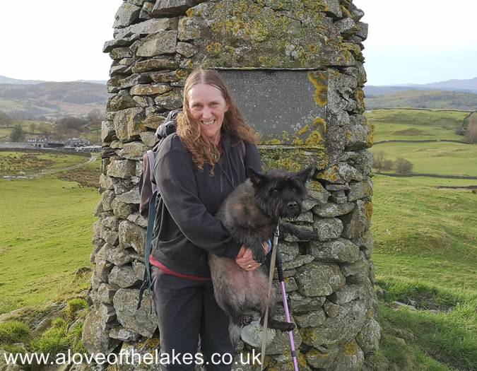 Sue and Spud at the summit of High Knott and the Williamson Monument