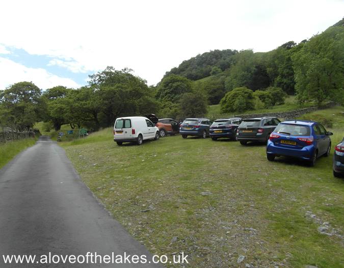 parking is restricted beyond a cattle grid, but there is a large grassy area on the